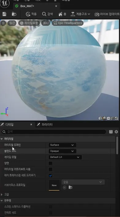 콘텐츠 브라우저 우클릭 → 머테리얼 생성