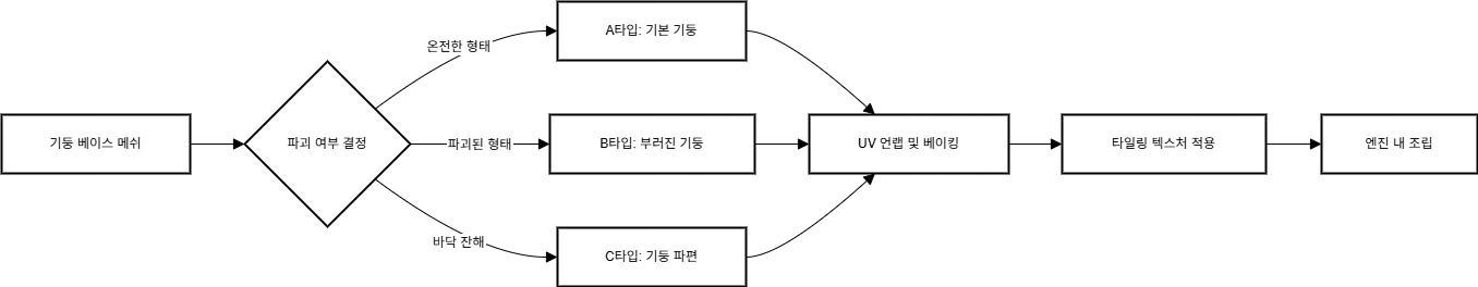 배경 모델러에게 가장 중요한 **'모듈러 제작 방식(부품을 만들어 조립하는 방식)'**은 글로 설명하면 매우 복잡하다. 이를 플로우차트로 표현하면 직관적이다.