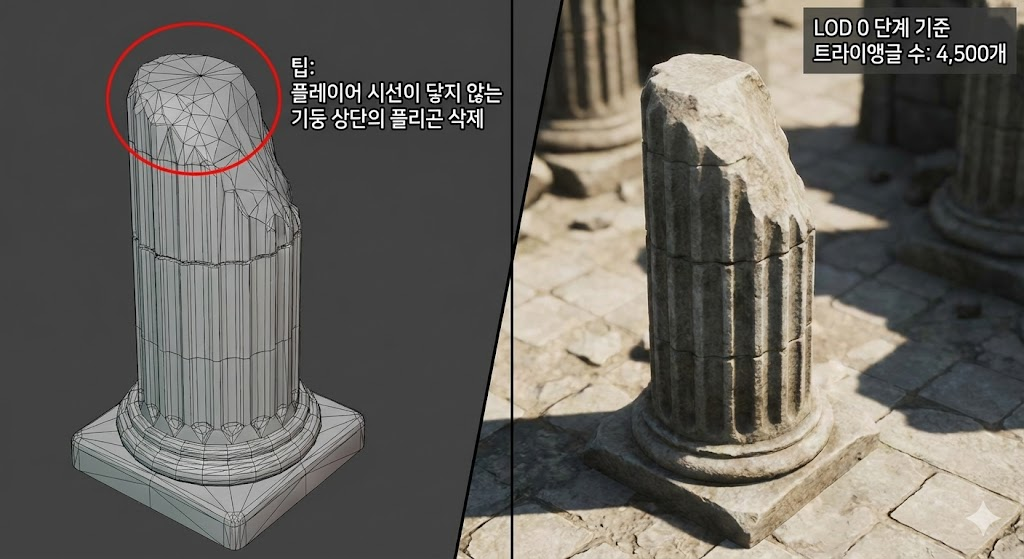 | 05. 라이팅/최적화 | 언리얼 엔진 5 | 루멘 라이팅 설정 및 나나이트 적용 | 드로우 콜 수치 및 FPS 방어 |